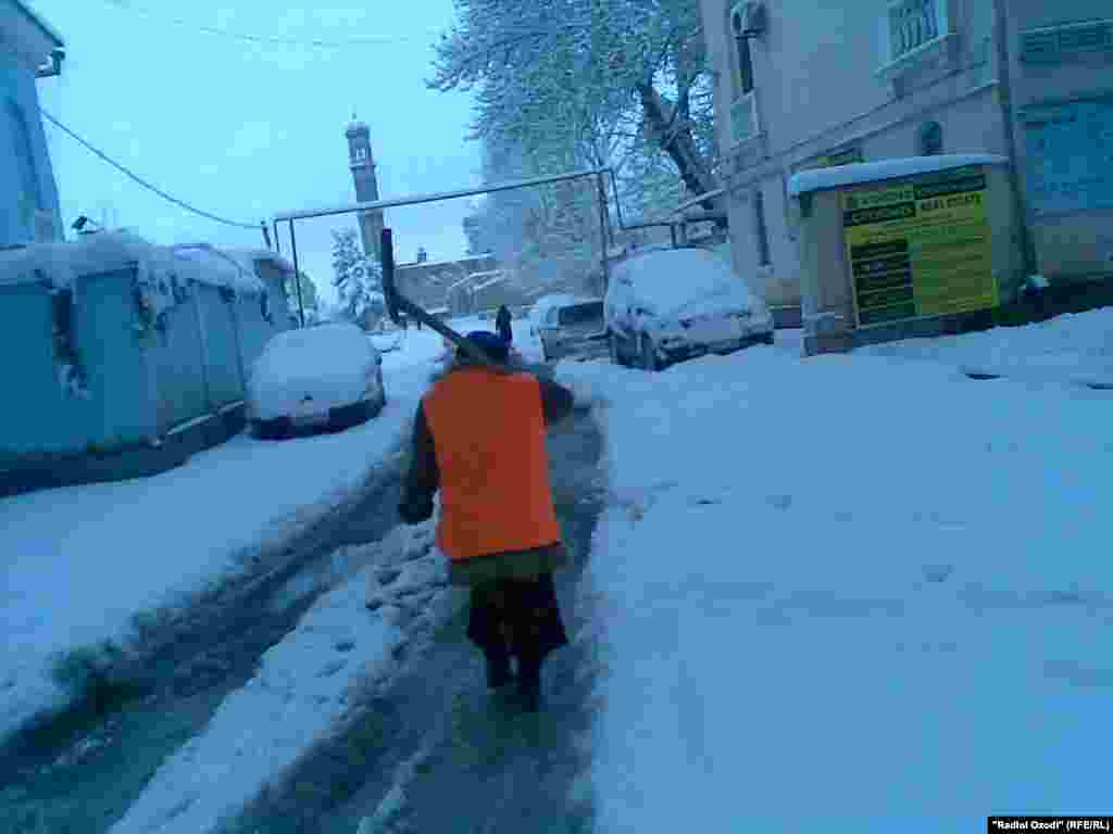 Резиши шадиди барф дар Душанбе, ҳаракат дар ҷодаҳоро мушкил карда, сокинонро мунтазири мусофирбарҳо гузоштааст.