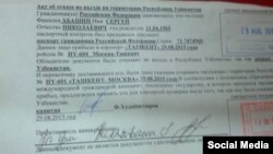 Антропологи шинохтаи рус Сергей Абашинро рӯзи 29 август аз фурудгоҳи Тошканд пас гардондаанд. Марзбонони Узбакистон ҳангоми тафтиши шиноснома ба дасти ӯ санаде бо номи “Акт дар бораи манъи вуруд ба қаламрави Ҷумҳурии Узбакистон” бо имзои “капитан Ф.Худойназаров”-ро супурдаанд, ки дар он бидуни ягон шарҳу ироаи ҷузъиёт гуфта мешавад, “дархости вуруди дорандаи ин санад ба қаламрави Ҷумҳурии Узбакистон рад карда шуд, чунки ҳаққи вуруди ӯ манъ карда шудааст.”